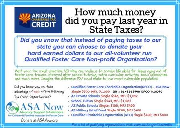 Through the Arizona Charitable Tax Credit Arizona taxpayers have an added incentive to make a donation and receive a dollar-for-dollar tax credit. Please consider taking advantage of this credit by making a.